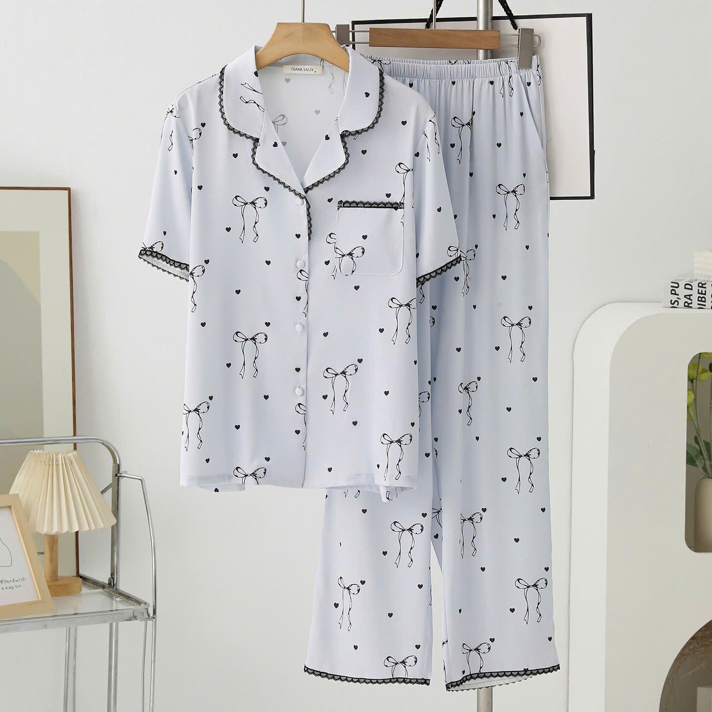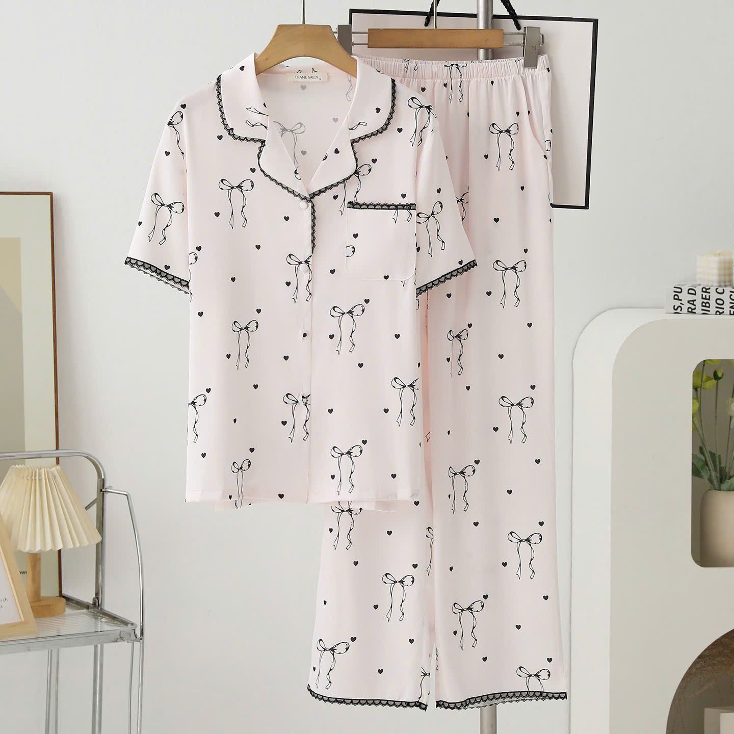 Pyjama nơ lụa satin mềm PM6650-2