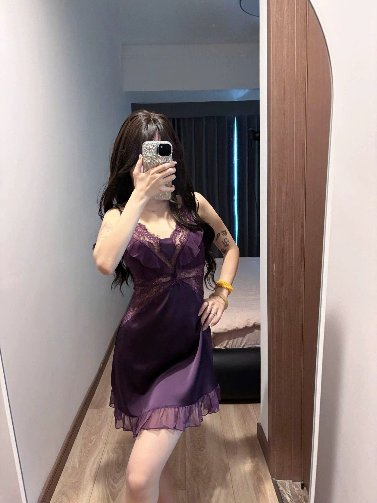 Váy 2 dây lụa phối ren D2547