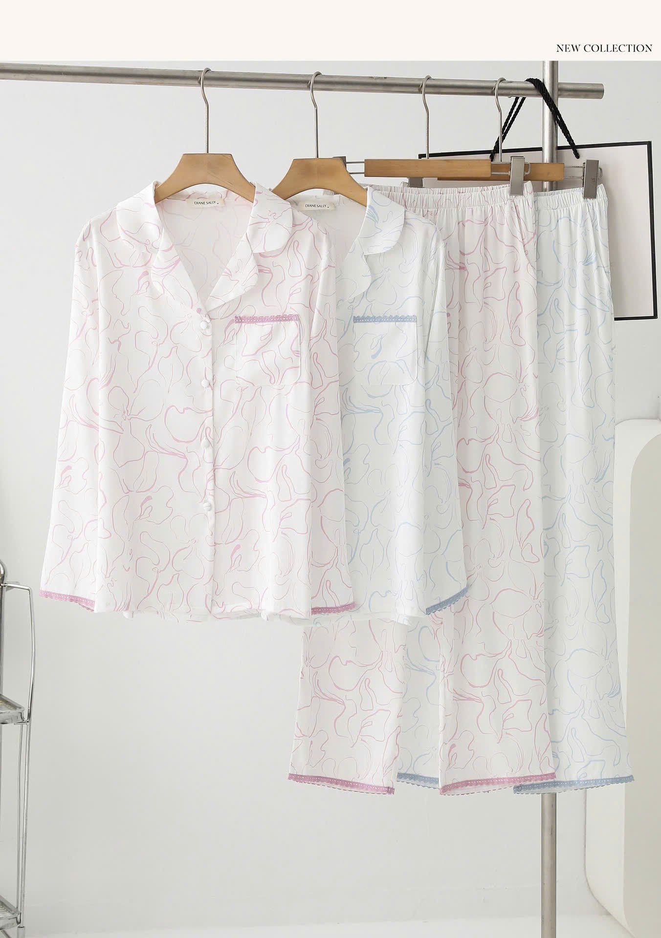 Pyjama hoa văn lụa satin mềm PM9759