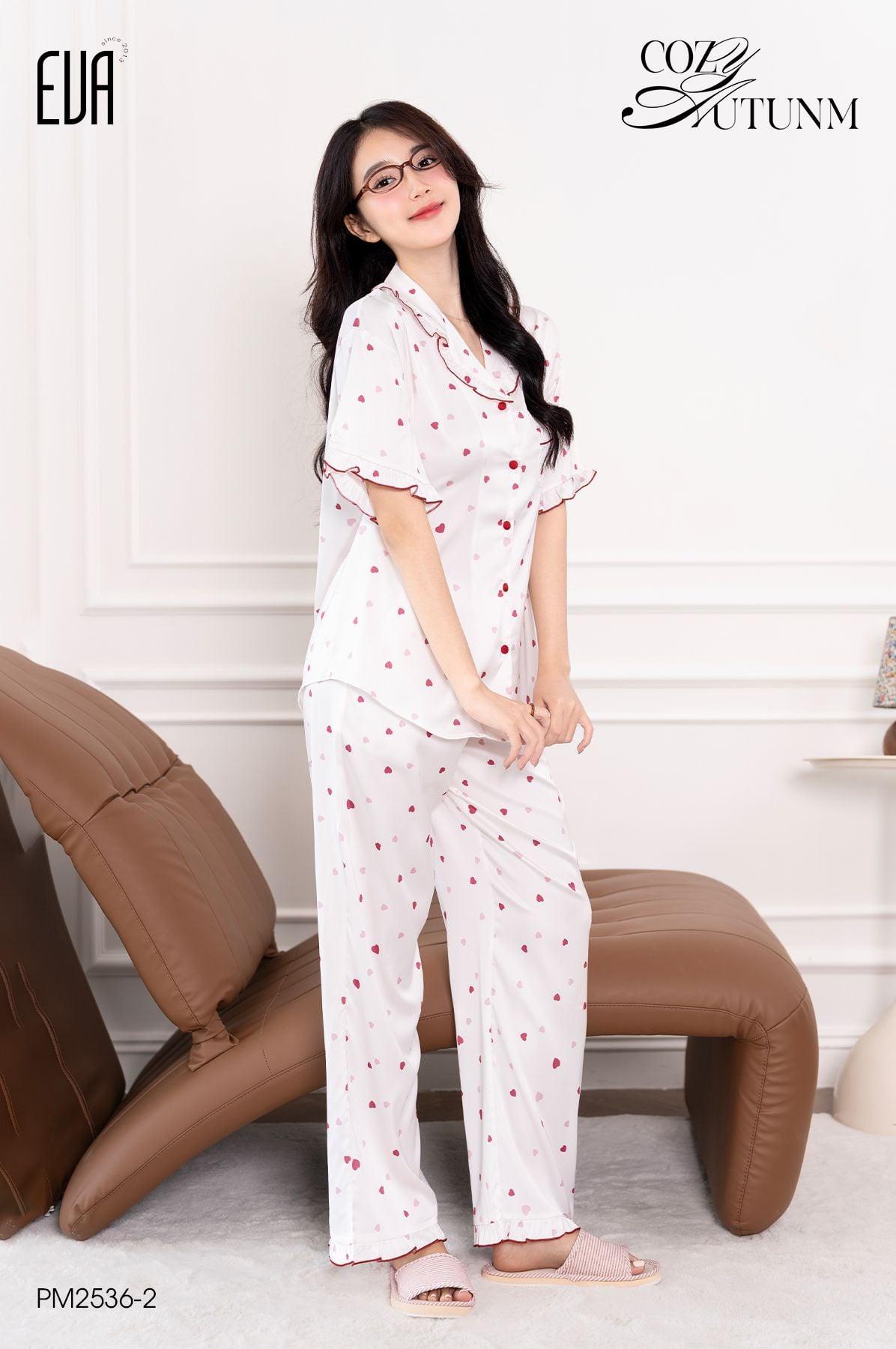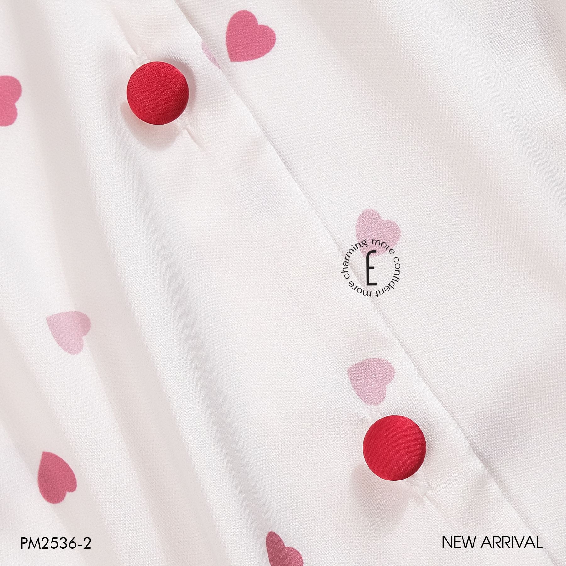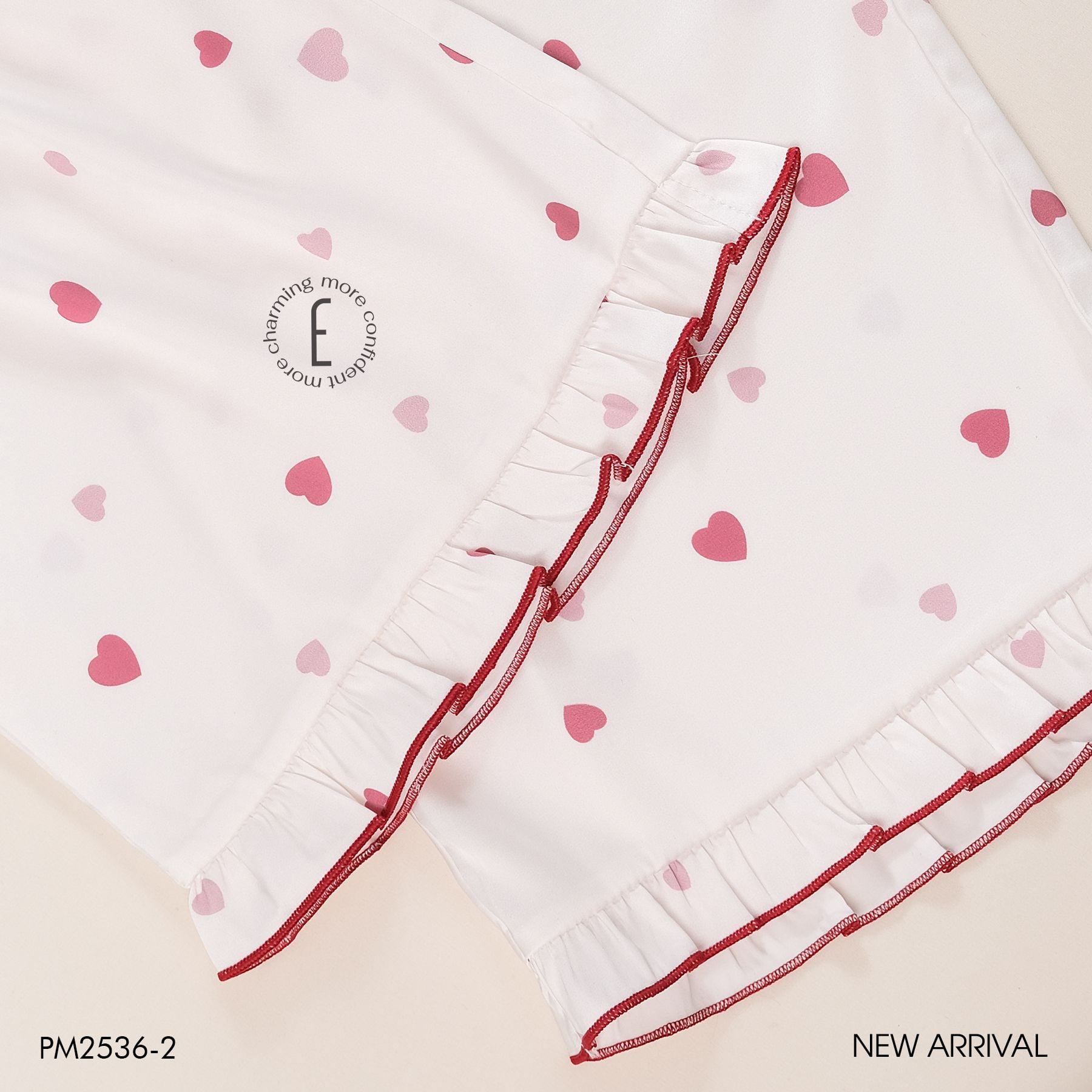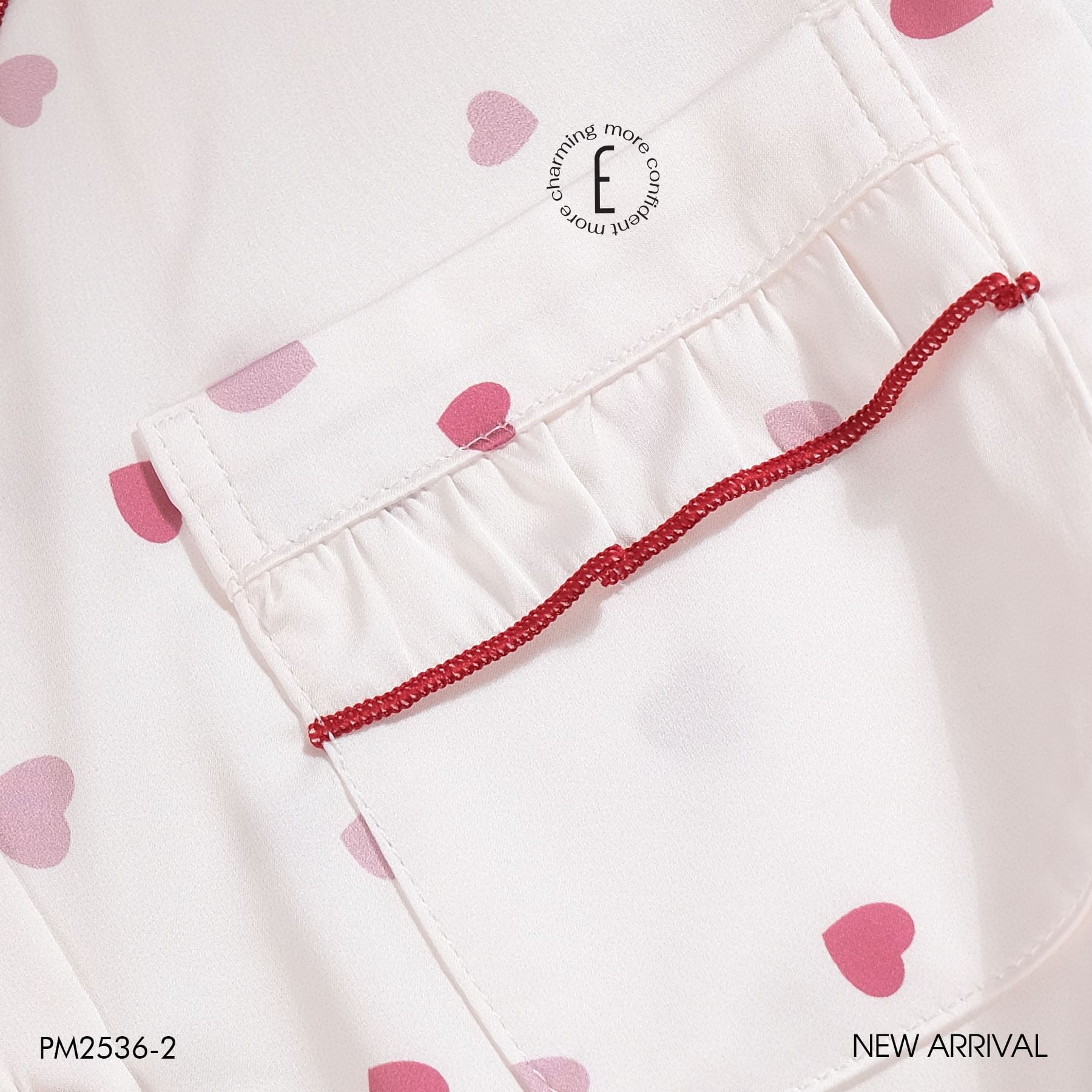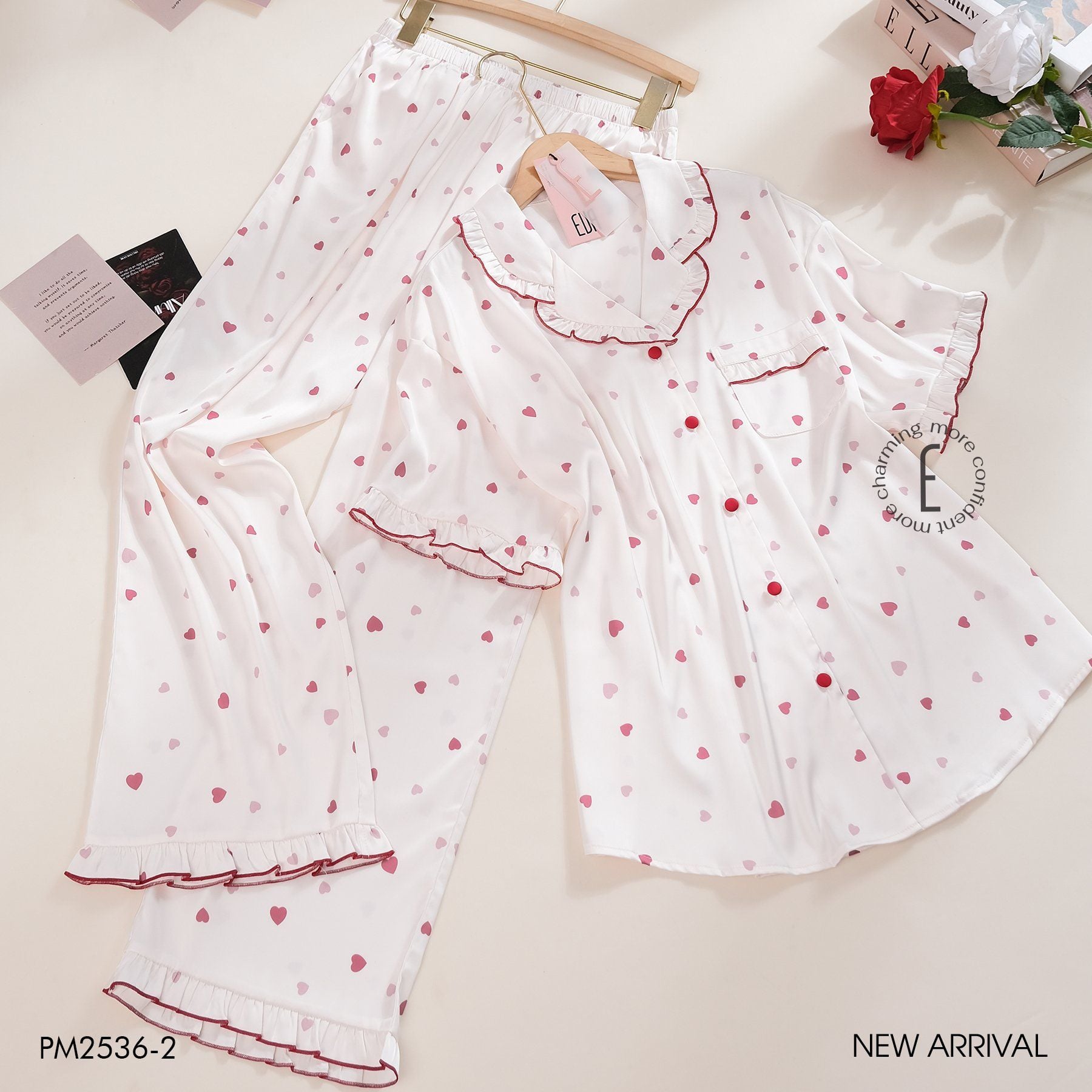 Pyjama lụa satin viền hoạ tiết trái tim PM2536-2