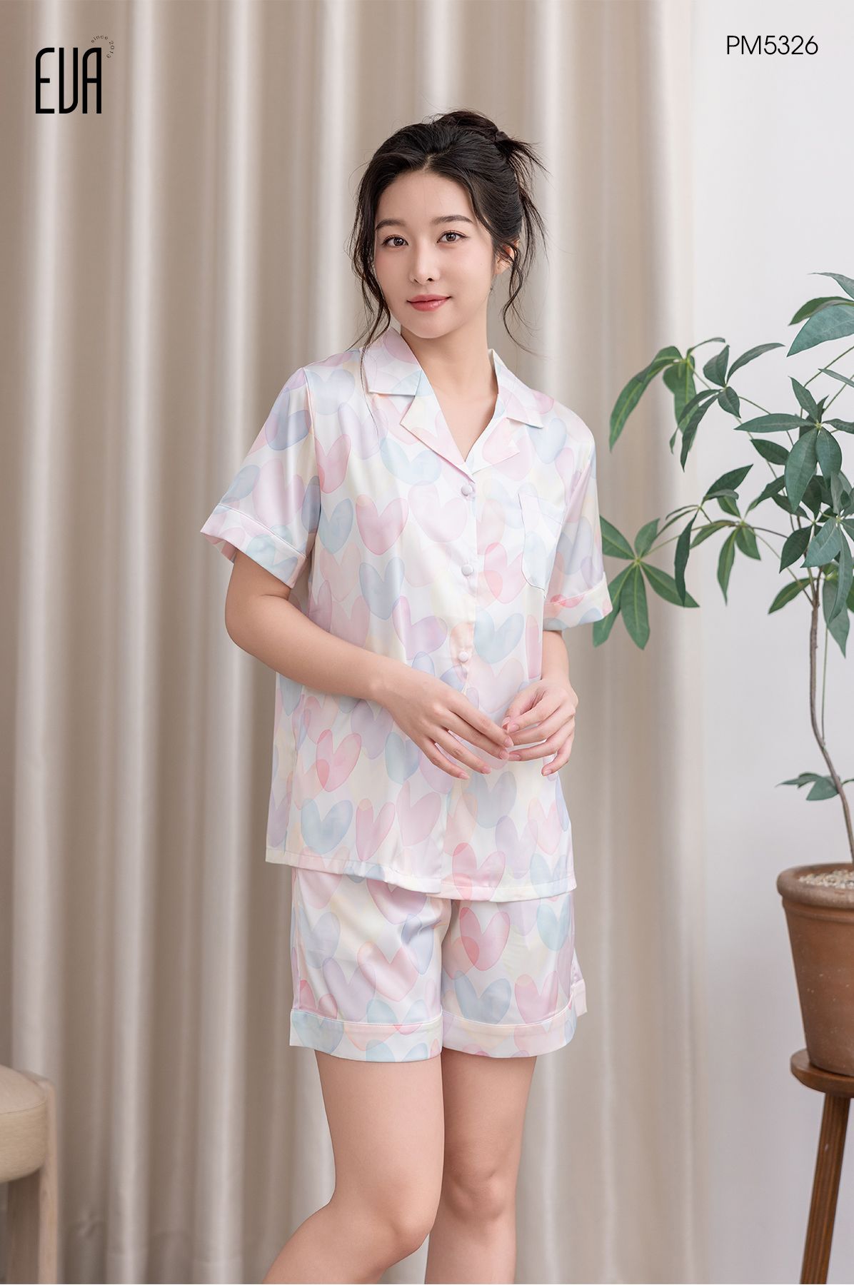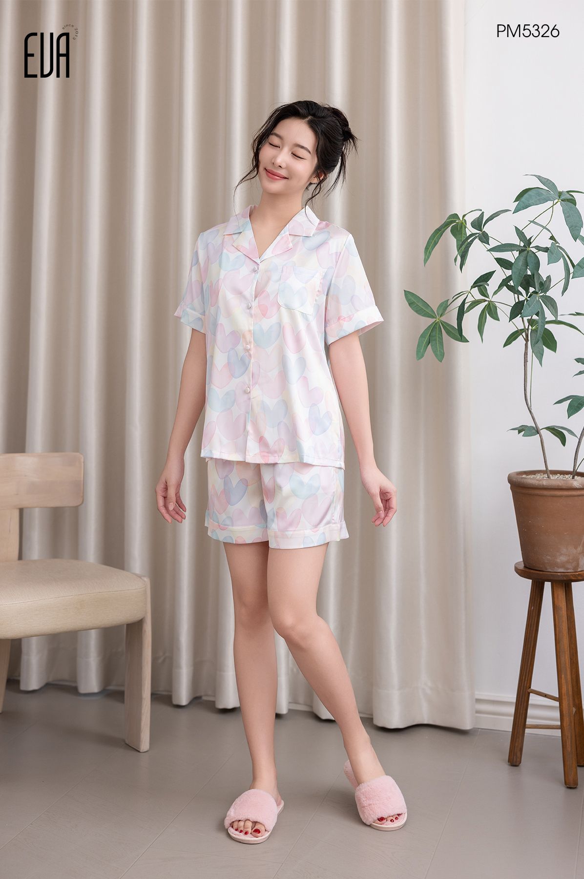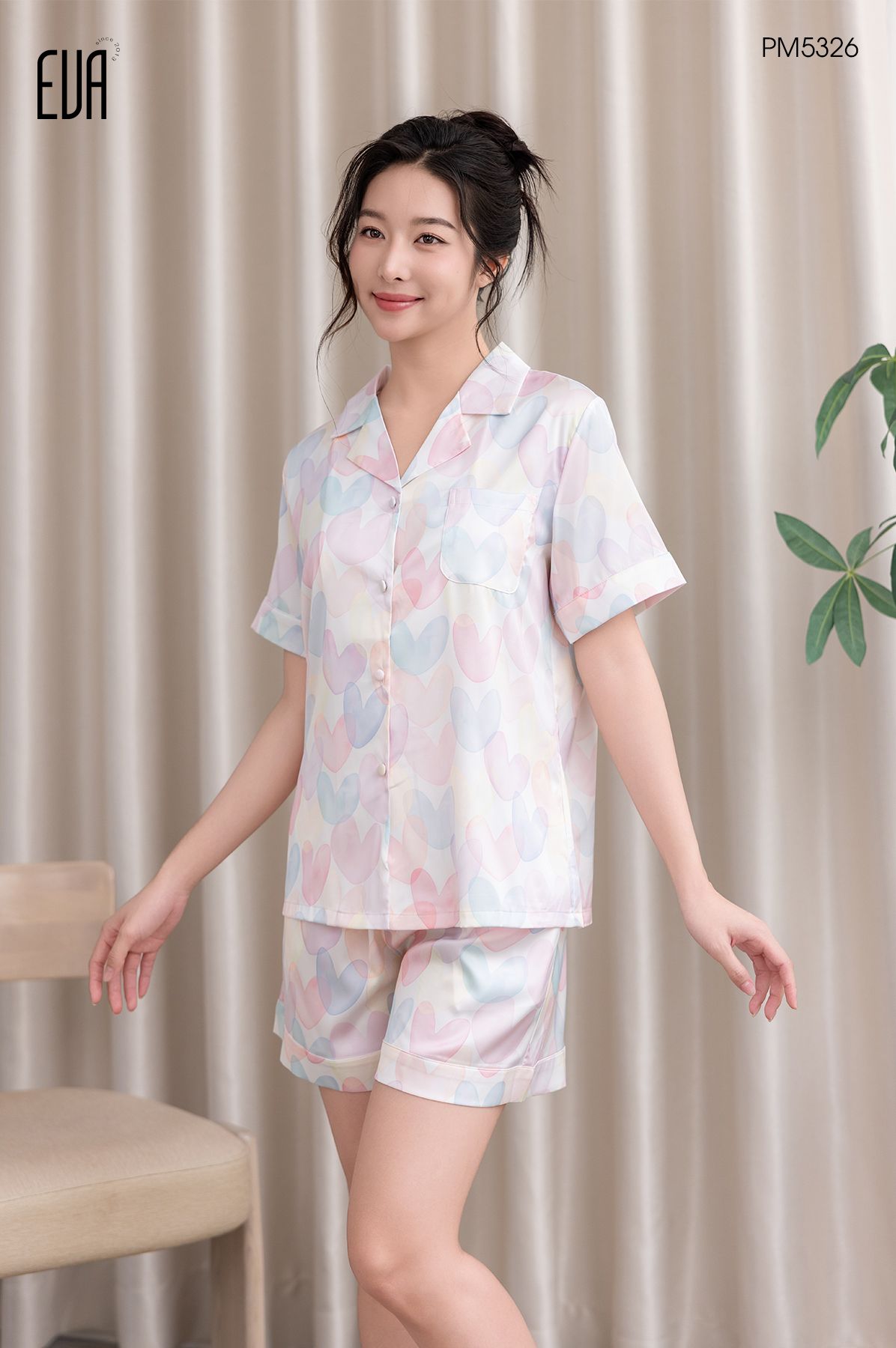 Pyjama ngắn lụa satin PM5326-1