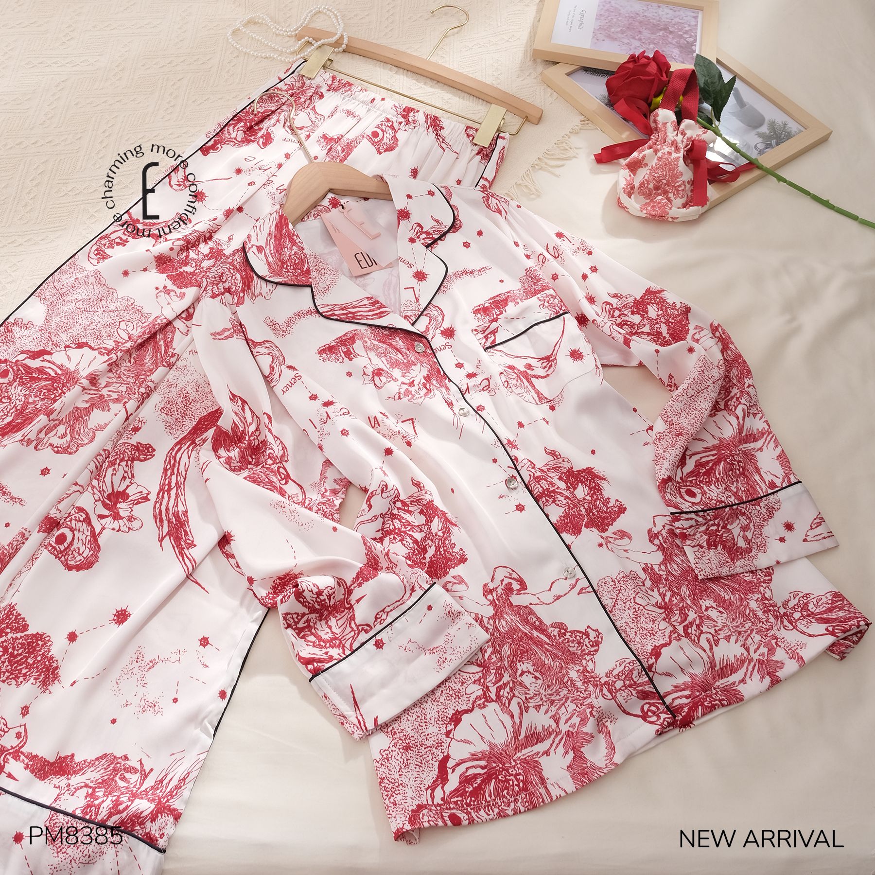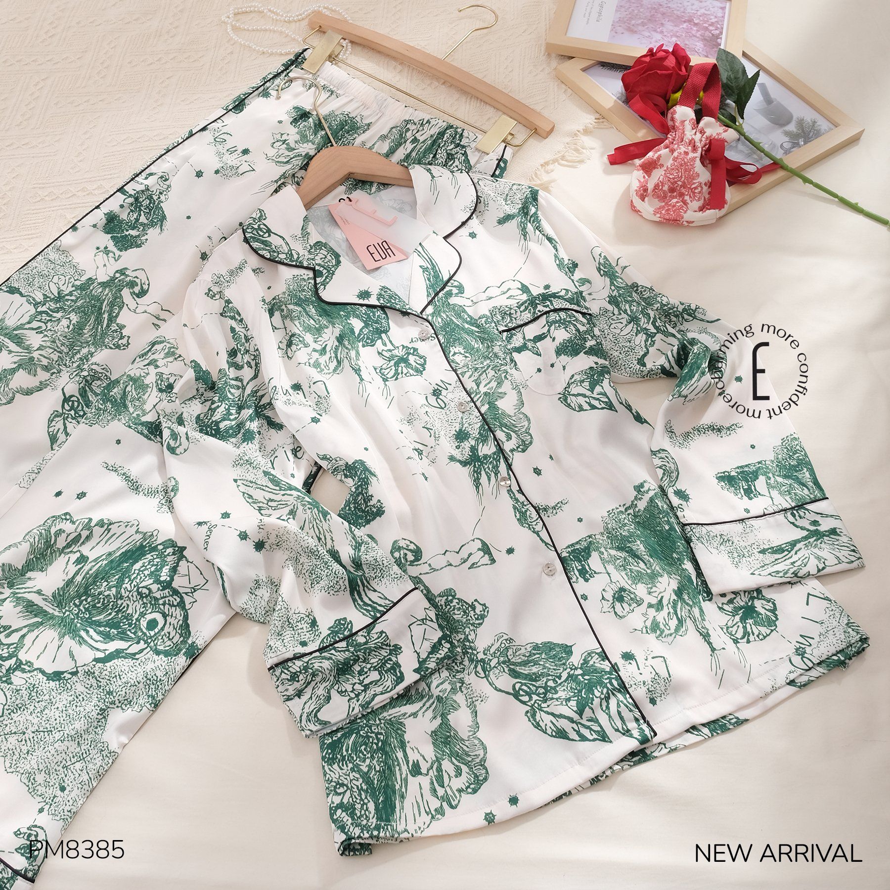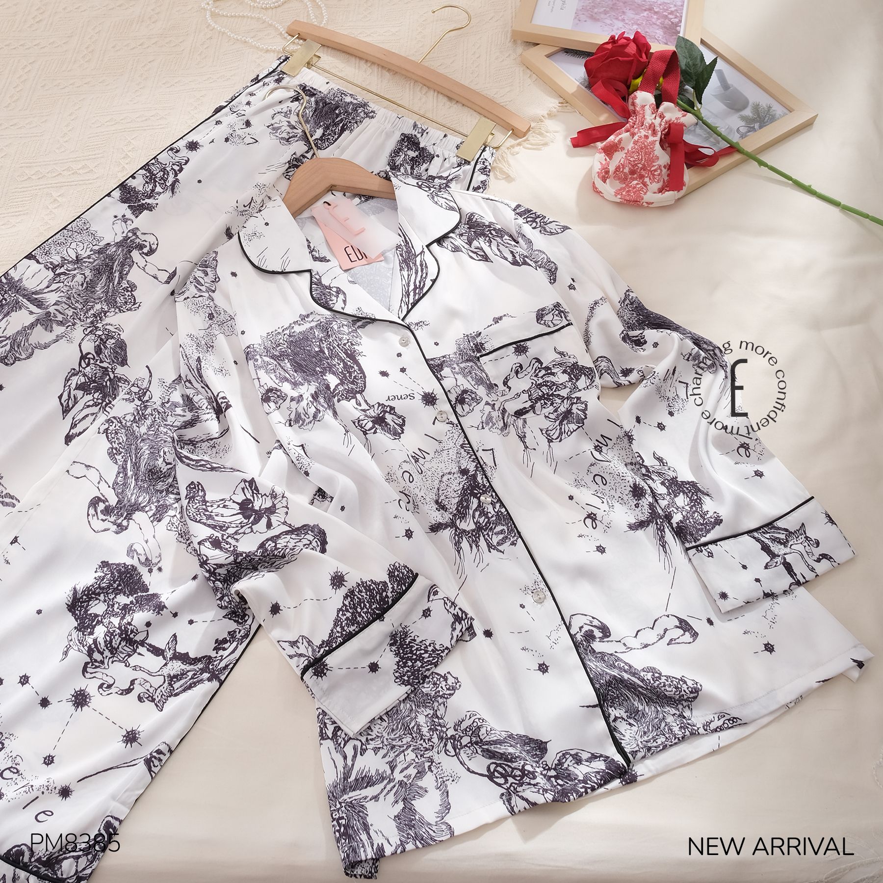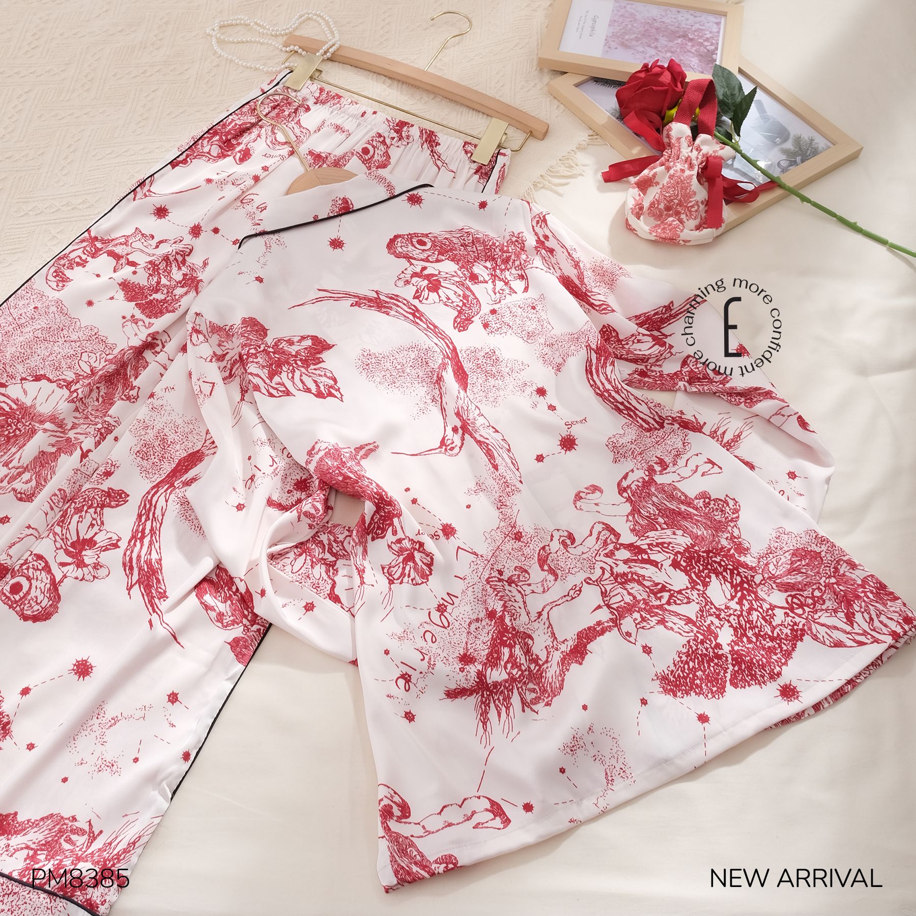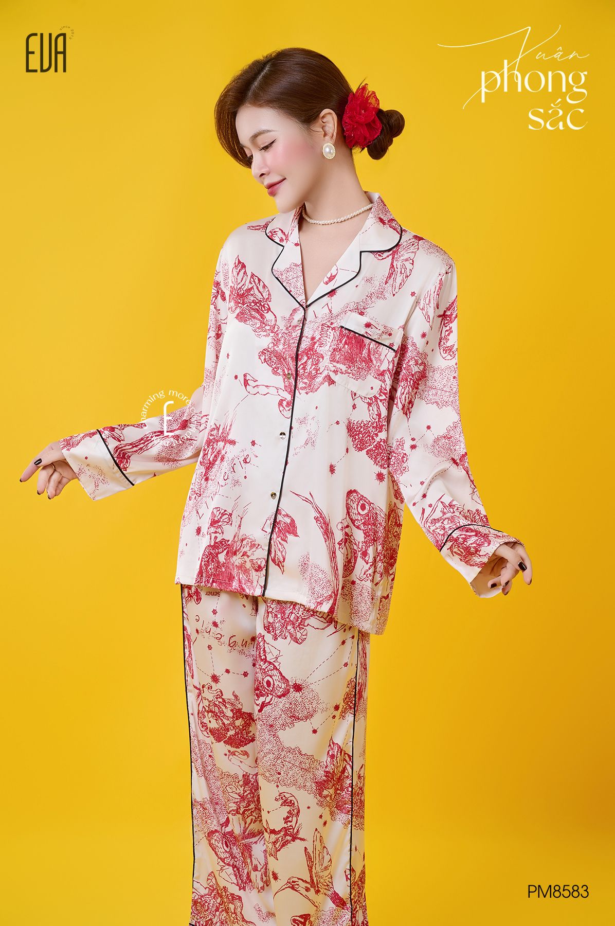 Phù dung cánh mỏng, mong manh mà rực sắc. Trong gió mưa, trong nắng hanh vẫn bền bỉ, âm thầm đợi mặt trời mọc, đợi mặt trời lặn, cần mẫn giữa thinh không. Pyjama Phù Dung với thiết kế sang trọng kết hợp cùng họa tiết truyền thống lạ mắt mang đến cảm giác cổ điển và quý phái.