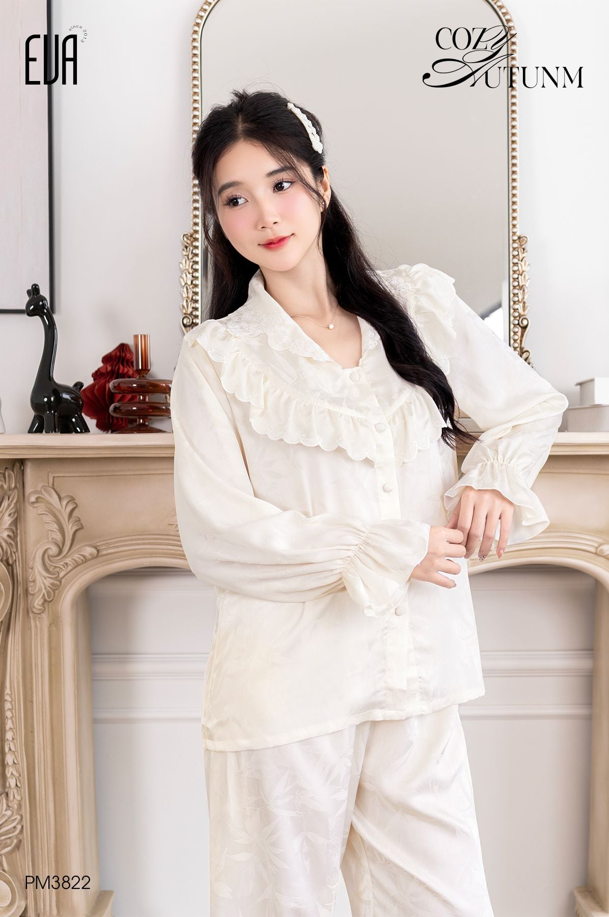 Nhẹ nhàng mà vẫn nổi bật, PM3822 mang đến vẻ đẹp cổ điển xen lẫn sự tinh tế hiện đại. Từng đường xếp bèo mềm mại, từng chi tiết ren thêu tỉ mỉ hòa quyện trên nền vải lụa cao cấp, giúp nàng tỏa sáng ngay cả trong những phút giây bình yên ở nhà.