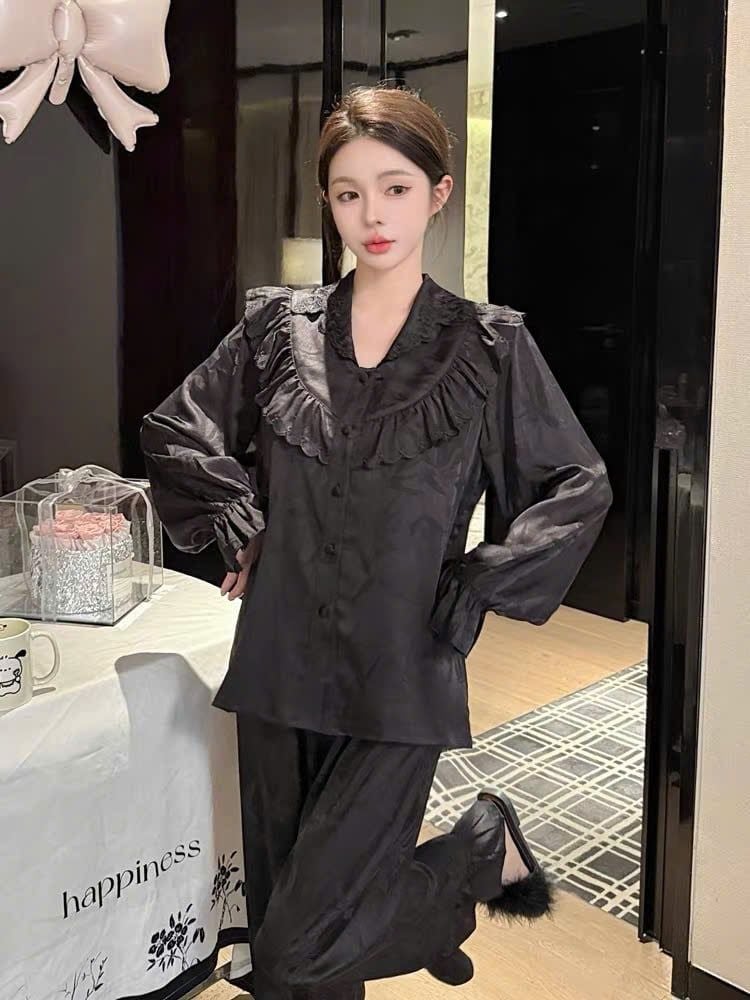 Gam màu đ𝐞𝐧 – 𝐭𝐫𝐚̆́𝐧𝐠 𝐤𝐞𝐦 được phối khéo léo, vừa dễ mặc vừa sang trọng, tạo nên cảm giác thanh lịch mà đầy cuốn hút. Chỉ cần khoác lên, nàng đã có ngay một outfit ngủ thật kiêu sa và nữ tính.
