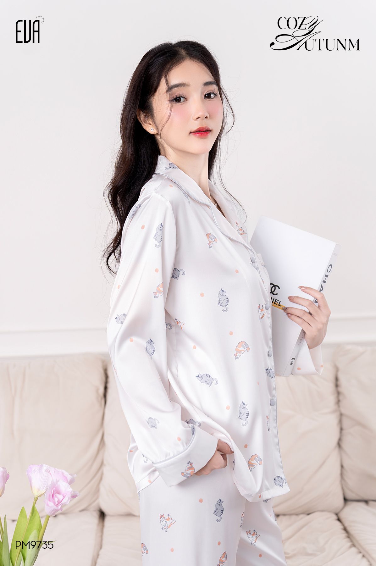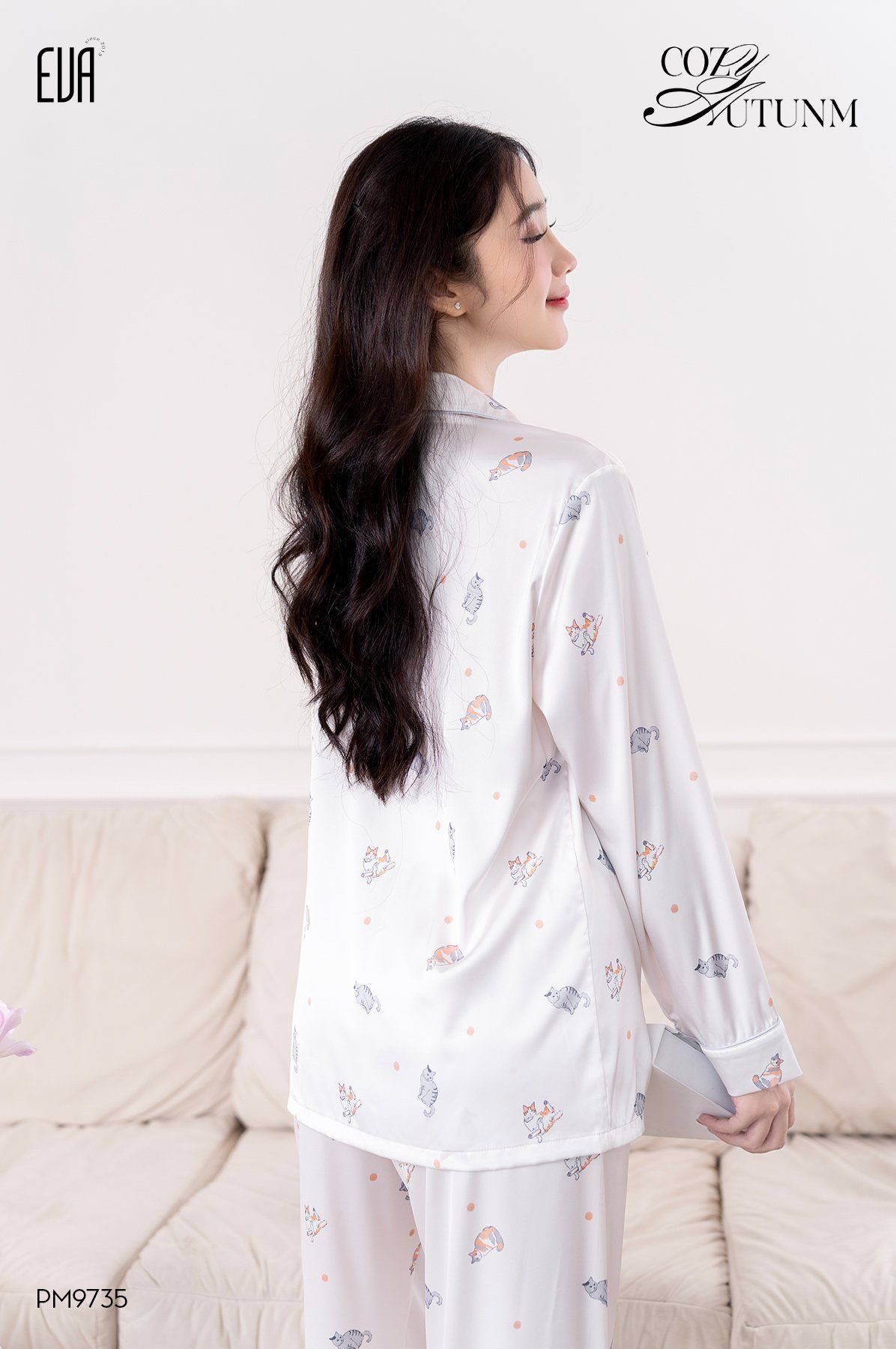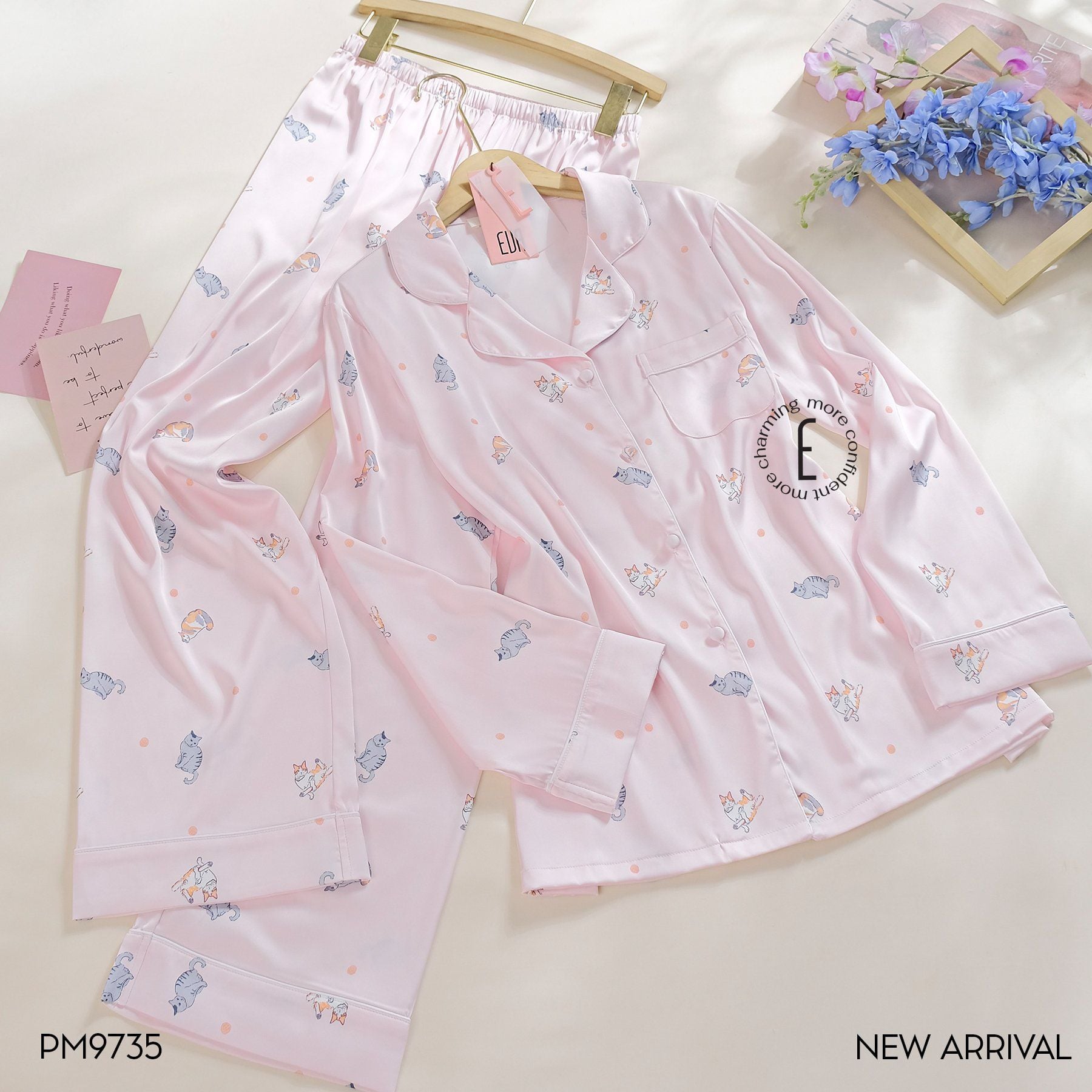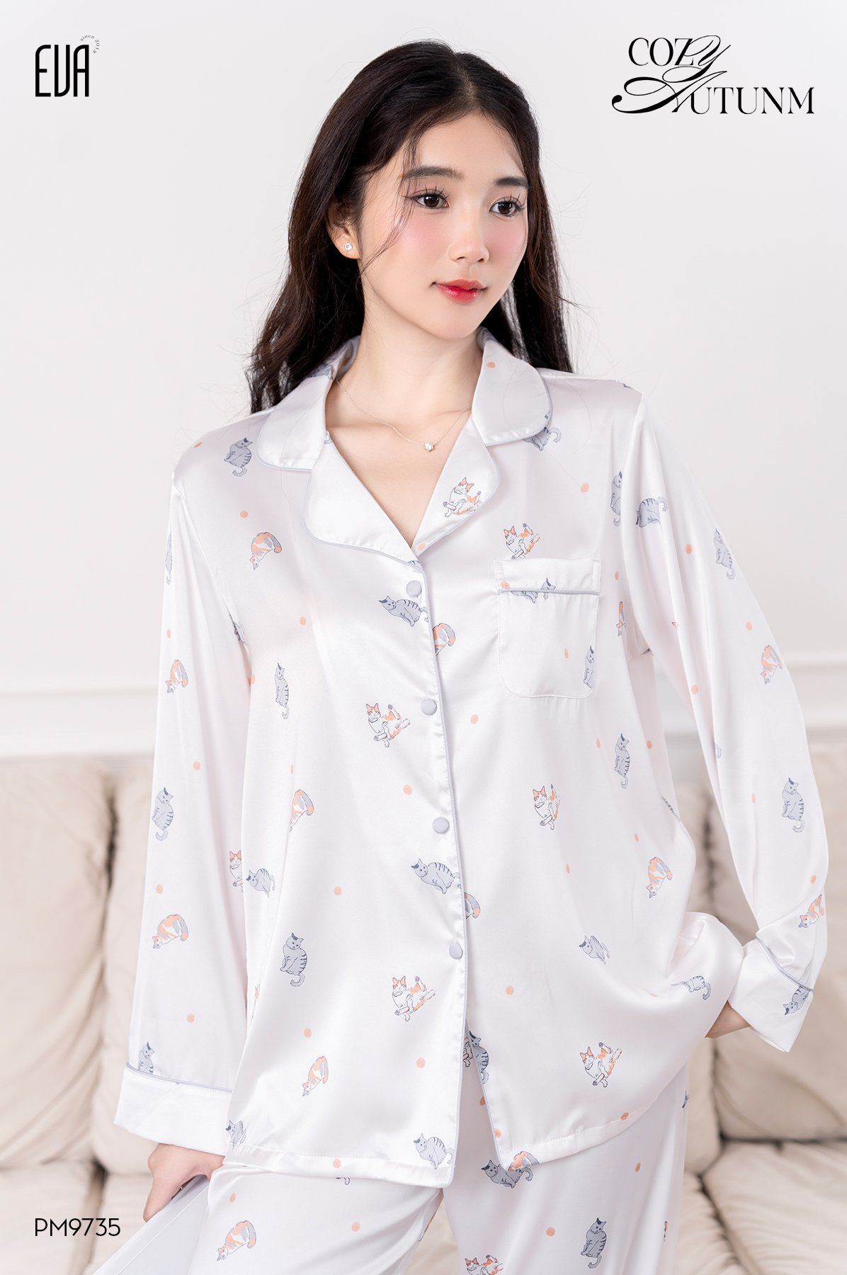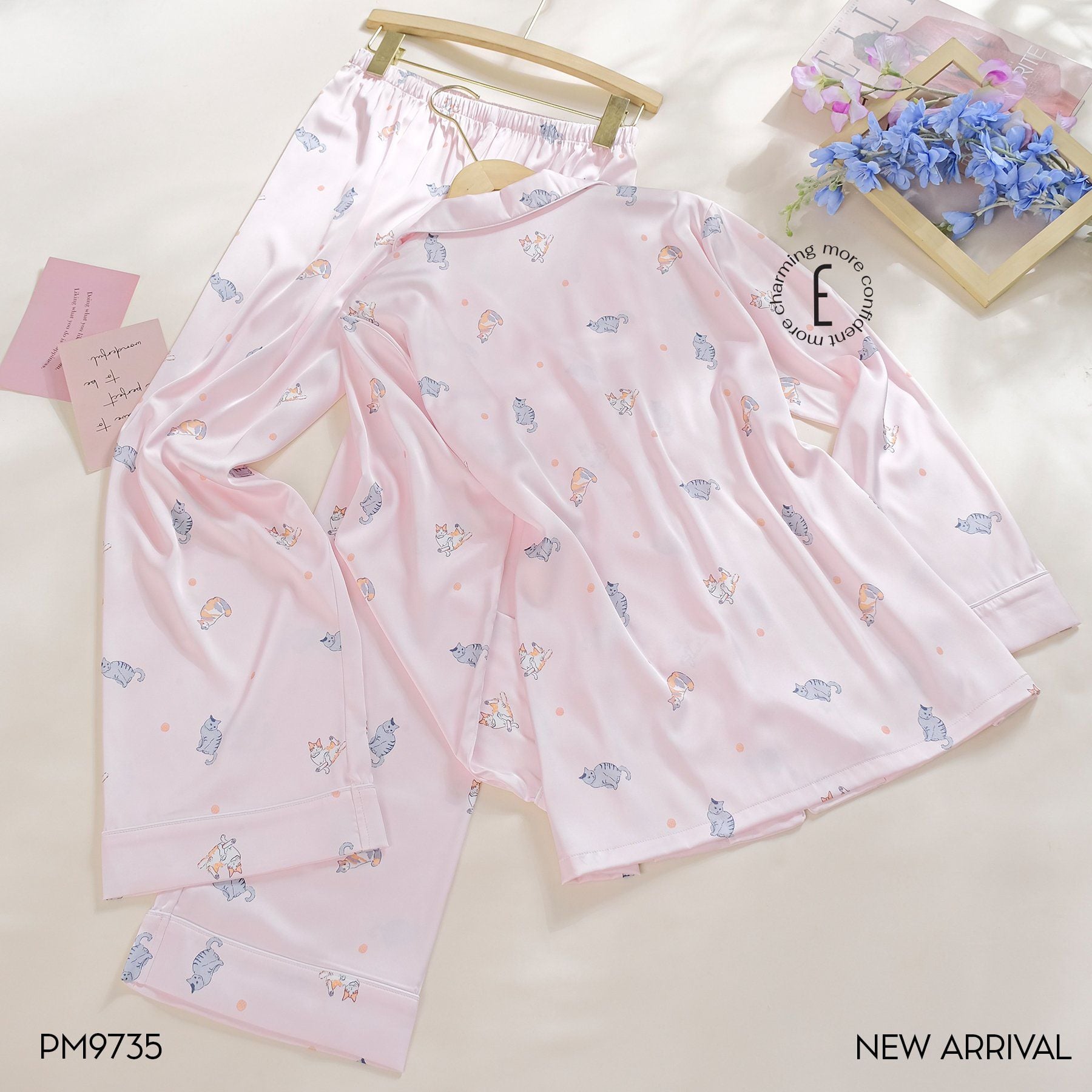 Pyjama lụa dài hình Cat PM9735