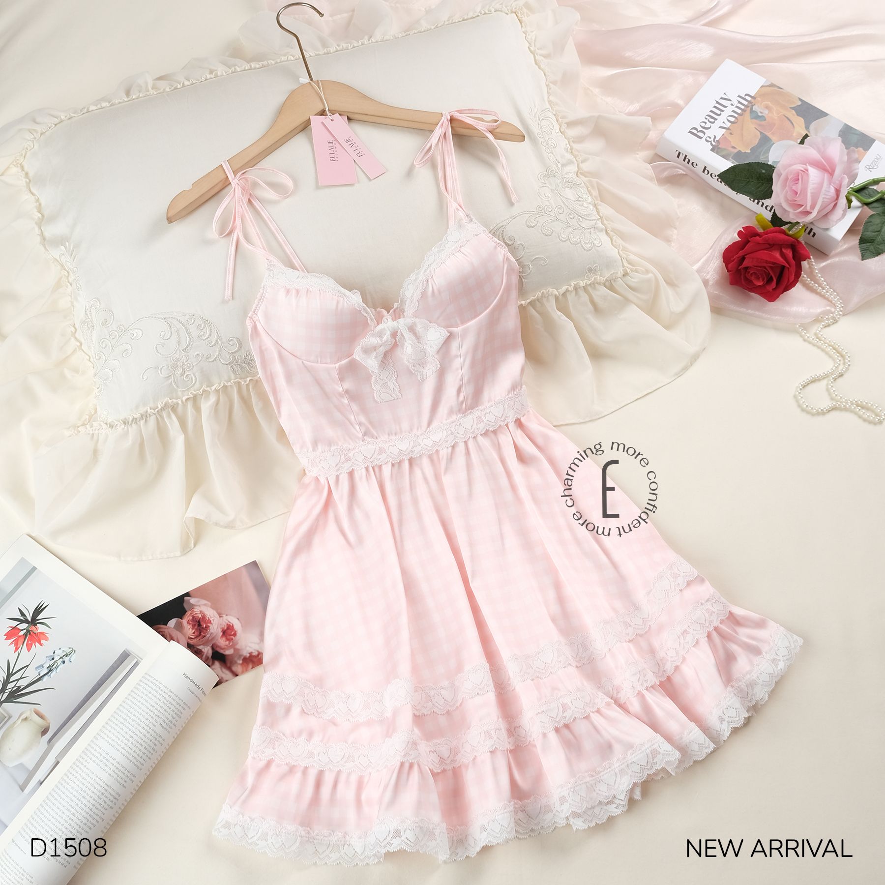 Váy lụa caro hồng D1508