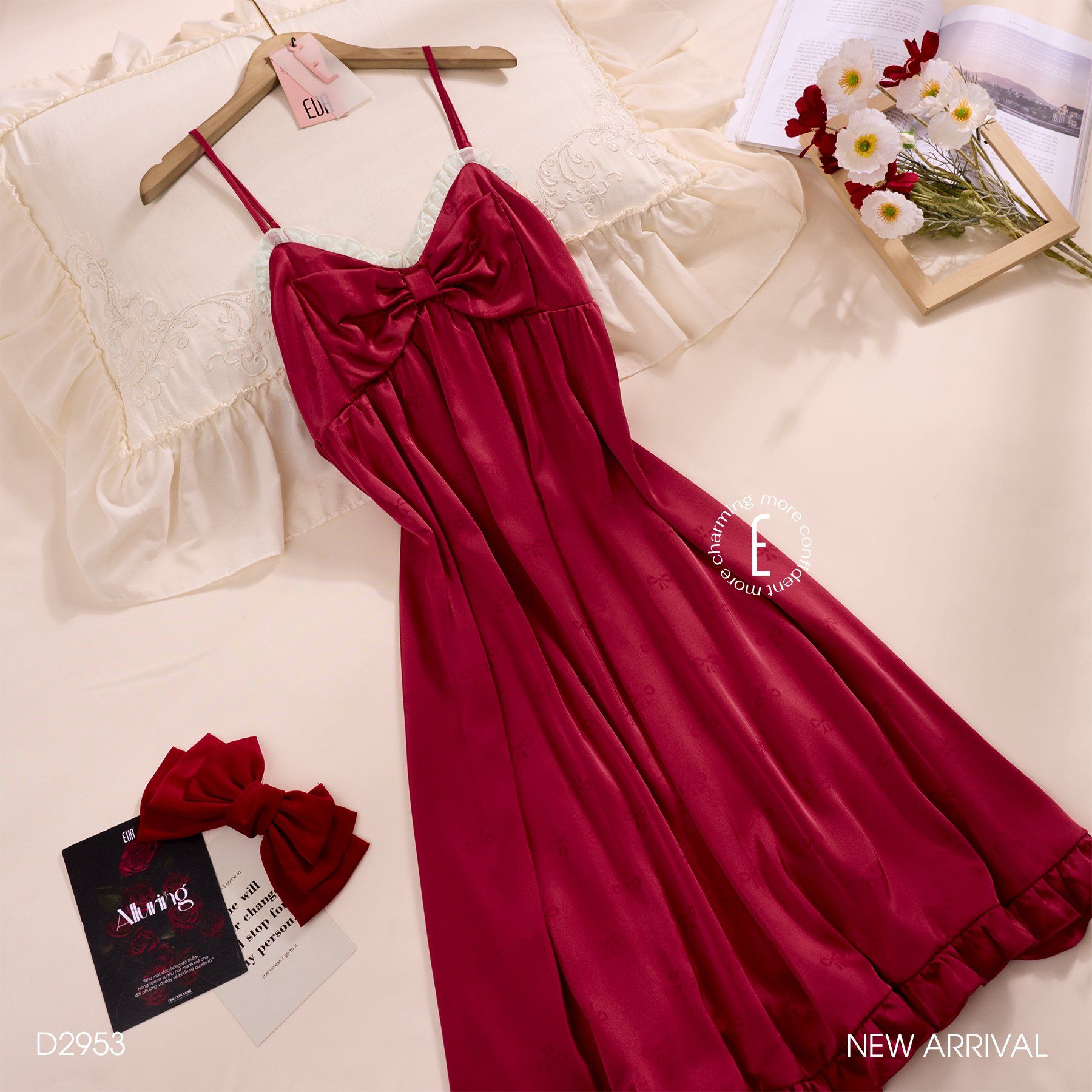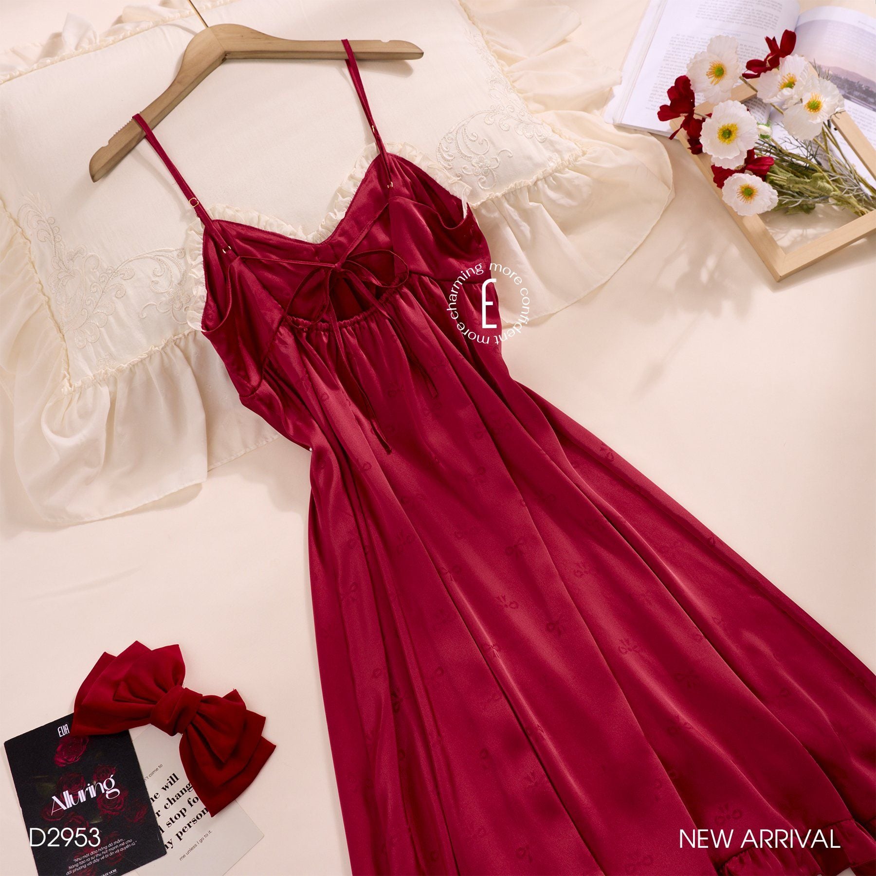 Váy lụa nơ đỏ D2953